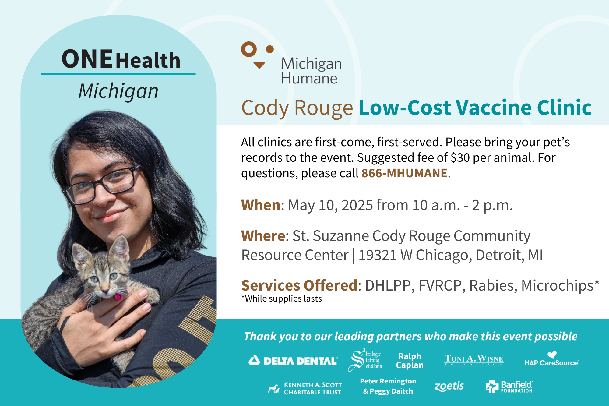 Services Offered*: DHLPP, FVRCP, Rabies, Microchips, Flea and Tick Prevention. Free Health and Human Service Resources also available. *While supplies lasts